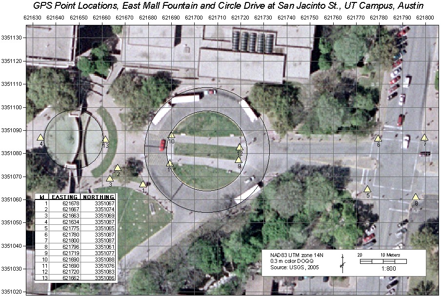a feature class of 13 GPS target points – points that you will record the