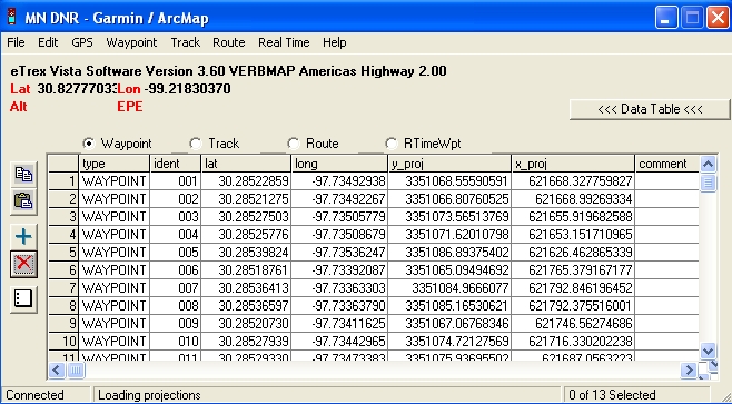 This will download all waypoints to the DNR software and display
